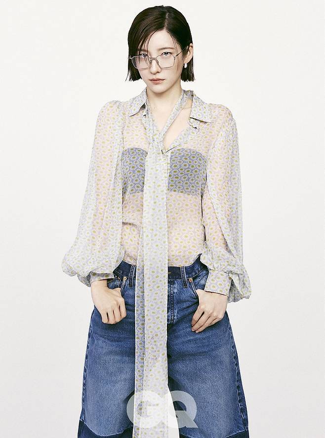 박지현은 공개된 화보에서 러플 디테일이 매력적인 셔츠와 청바지, 맨발의 스타일링부터 시스루 블라우스와 안경, 블랙 미니 드레스와 봄버의 믹스 매치 등 규정짓지 않은 자유로운 매력의 모습을 카메라에 담았습니다.