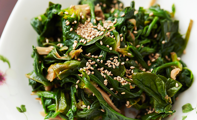 시금치나물은 한식 밥상에서 빠지지 않는 대표 반찬이에요. 데친 시금치에 간장, 마늘, 참기름, 깨소금만 넣어 무치면 완성! 시금치는 비타민과 미네랄이 풍부해서 면역력 강화와 뼈 건강에 도움이 되고, 식이섬유가 많아 장 건강에도 좋아요. 참기름에 들어 있는 항산화 성분 덕분에 노화 방지 효과도 기대할 수 있답니다.