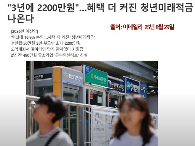 정부가 최근 발표한 청년미래적금은 청년층의 목돈 마련을 돕는 새로운 제도입니다. 매달 50만 원씩 3년간 납입하면 총 1,800만 원을 저축하게 되는데, 여기에 정부 기여금과 우대금리, 비과세 혜택이 더해져 만기에는 약 2,200만 원을 받을 수 있습니다. 단순 계산으로 400만 원가량의 수익을 얻는 셈이며, 연 환산 수익률로는 최대 16.9% 수준에 달합니다. 청년들에게는 안정적인 투자 수단이자 실질적인 재산 형성 기회가 될 수 있습니다.