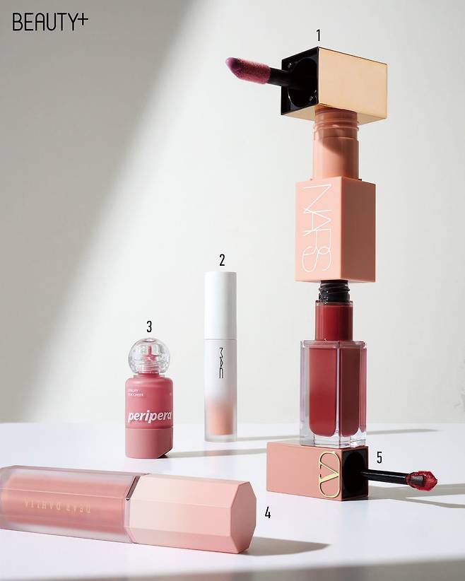 1 나스 에프터글로우 리퀴드 블러쉬 원더러스트피부 속부터 차오른 듯 맑고 탱탱하면서 은은하게 반짝이는 속광 치크 메이크업을 완성해준다. 치크뿐 아니라 아이와 립까지 멀티로도 활용 가능하다. 7ml 4만5천원.