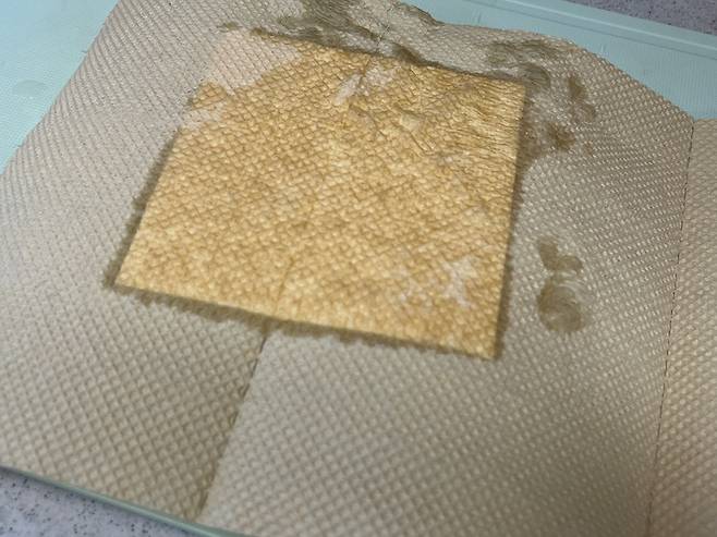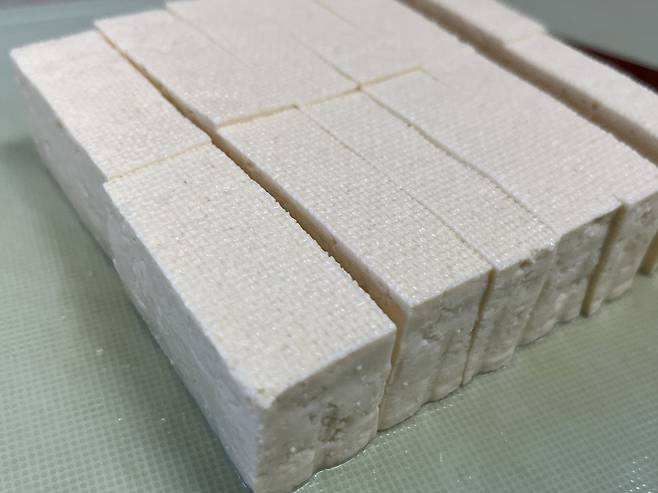 두부 1모는 꺼내서 키친타월로 물기를 최대한 제거하세요. 두부 구이 할 때는 물기가 없어야 기름이 튀지 않고 노릇노릇한 색감이 고르게 납니다.