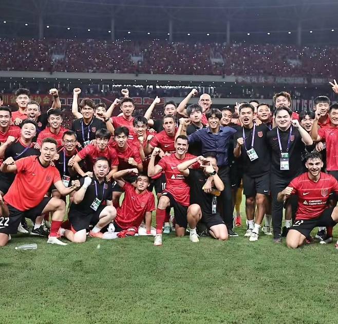 서 감독 SNS에 따르면 청두 팬들은 지난 2022년 완공된 5만 수용 최신식 홈구장에 대형 카드섹션 응원을 진행하면서 ACLE 진출을 축하했다.