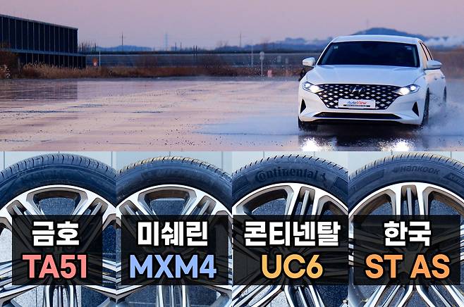 이번 테스트 제품들엔 저마다 특징이 있다. 한국 타이어의 키너지 ST AS는 인기 모델 키너지 EX의 후속격으로 올해 나온 신제품이다. 콘티넨탈 울트라콘택트 UC6는 기존에 서머(여름용) 타이어로 팔렸는데, 올해부터는 소재를 바꿔 4계절로 팔리고 있다. 금호 솔루스 TA51은 오토뷰가 몇 년 전 진행한 중급 타이어 비교에서 최고 점수를 받은 바 있다.