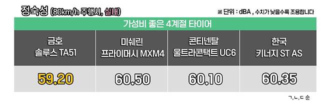 이렇게 정숙성에서는 금호 TA51이 가장 높은 점수를 챙겼다.