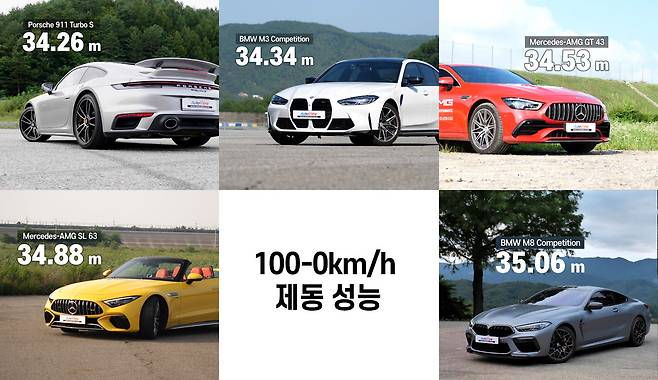 통상 이런 제동 거리를 보이는 차들은 스포츠카들 뿐으로 타이어 성능의 중요성을 확인할 수 있는 대목이다.