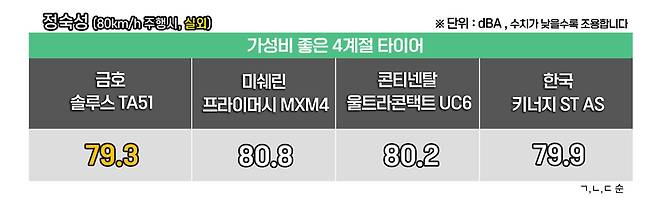 금호 솔루스 TA51였다. 만약 겨울철 환경이 포함되지 않았다면 점수 격차가 더 커졌을 것이다.
