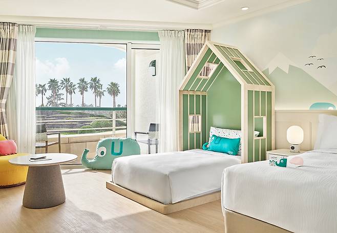 아이와 함께 떠나는 제주도 여행이라면 ‘그랜드 조선 제주' 호텔을 추천한다. 어린이용 어메니티가 준비된 키즈룸이 있으며, 투숙객 전용 키즈 카페도 있다. 아이와 함께 이용할 수 있는 수영장은 사계절 온수 풀로 운영된다. 성인 전용 루프탑은 따로 마련되어 있어 안전하게 이용할 수 있다.