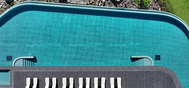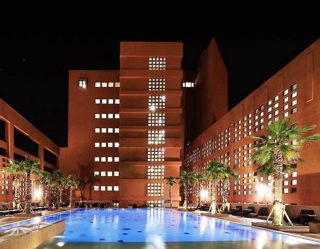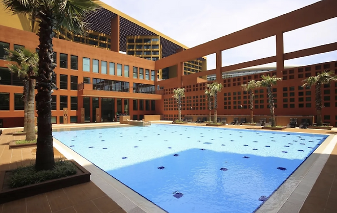 색달해변에 자리한 이국적인 숙소 ‘제주 부영호텔’도 수영장이 가장 유명하다. 이국적인 오렌지 벽돌과 야자수가 어우러진 모습을 배경으로 사진을 예쁘게 담을 수 있기 때문이다.
