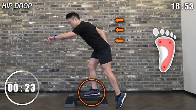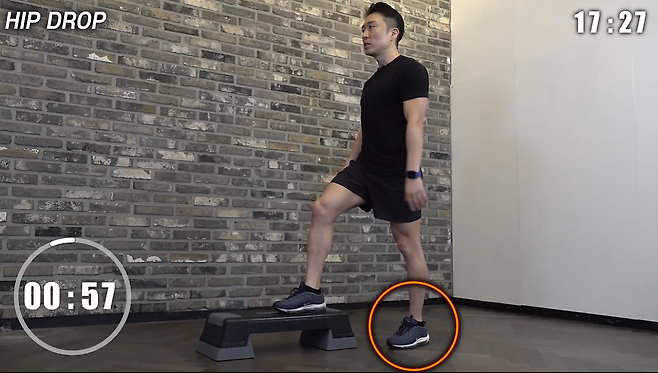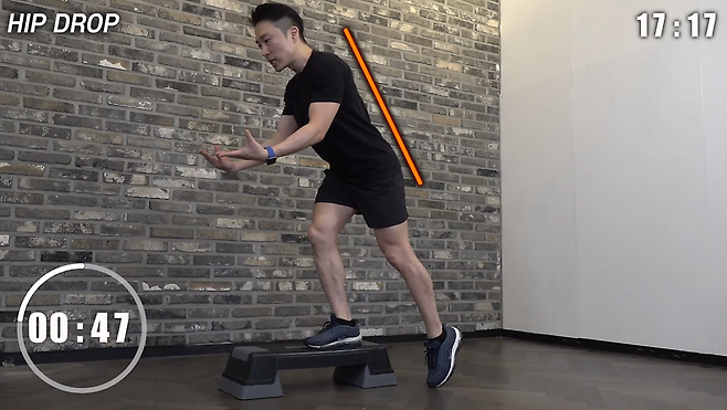 스텝박스를 활용한 이 HIP DROP 동작은 어렵진 않지만 천천히 하는 것이 중요합니다. 근육의 힘이 제대로 들어갔는지 확인하면서 운동을 해야 다치지 않고 확실한 효과를 볼 수 있습니다. 이렇게 천천히 나의 동작을 확인하는 운동은 자연스럽게 소음을 줄일 수 있기 때문에 층간 소음 걱정을 할 필요가 없습니다.