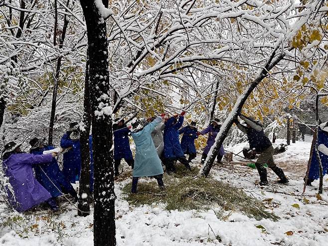 | ▲ 샛강의 자원봉사자들 샛강 나무들을 돌보는 사람들이 정말 많습니다. |