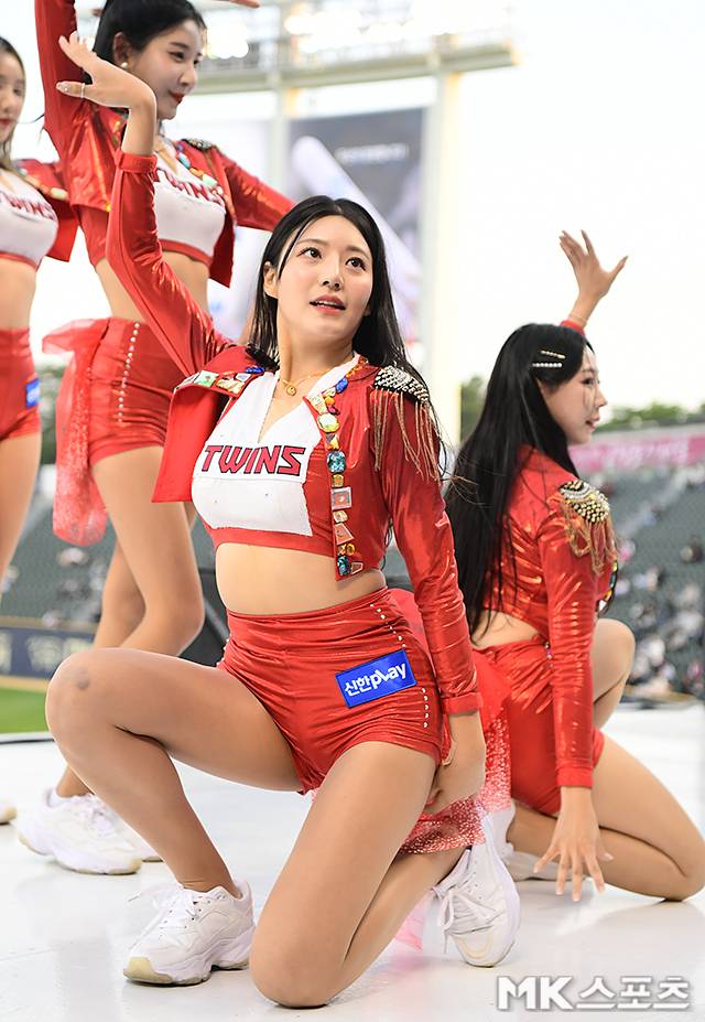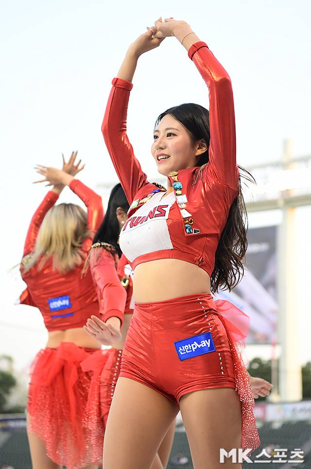 LG 트윈스 치어리더 김이서가 공연을 펼치고 있다.