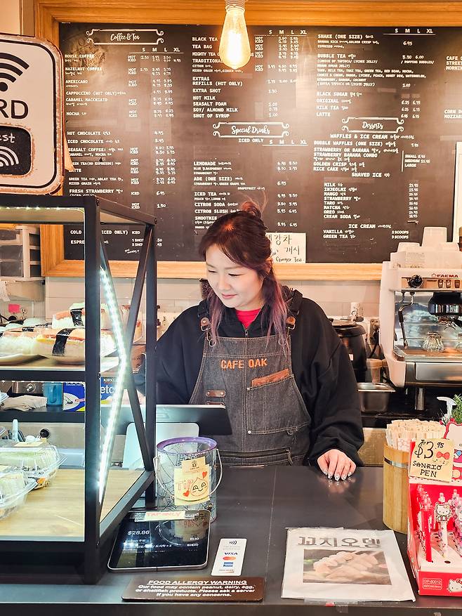 뉴저지주의 코리아타운인 팰리사이드파크에서 카페옥Cafe Oak을, 뉴욕과 가까운 곳에 위치한 위호큰에서 데이지 델리카트슨 앤 그로서리Daisy Delicatessen and Grocery를 운영하고 있습니다. 카페옥은 코리아타운에 위치한 김밥 카페이고, 데이지 델리는 미국인을 상대로 하는, 샌드위치와 커피 가게입니다.