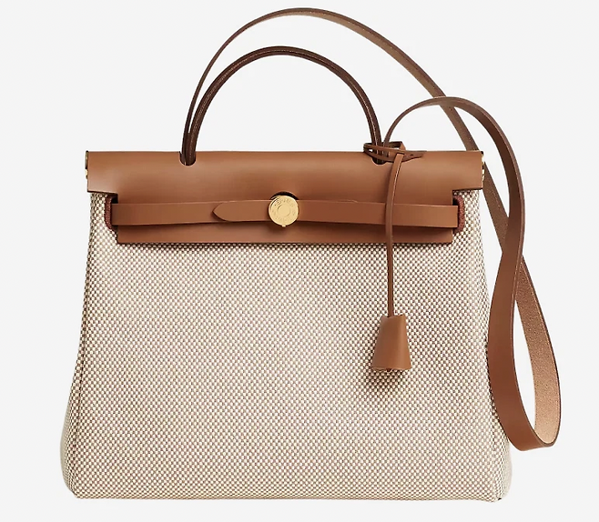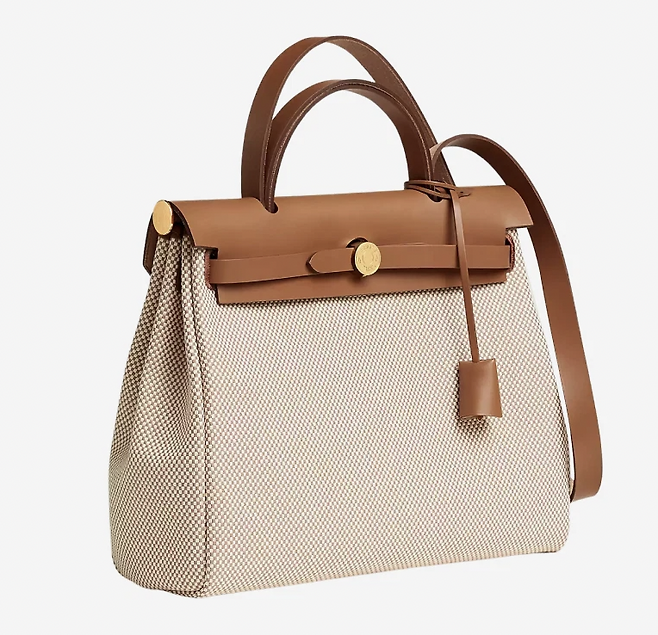 사진 속 가방 정보 -에르메스 에르백 집 31 백 르투르네 바이킹 캔버스 & 골드 하드웨어 에크류 베쥬 포브