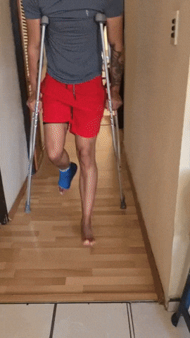 다리 다쳐서 깁스한 채 목발 짚고 다니는 집사 본 고양이가 한 반전 행동