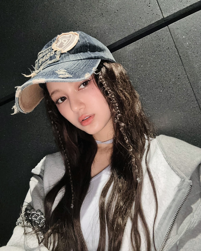 평범한 볼캡은 가라!다니엘의 볼캡 패션인데요, 데미지 진 재질의 볼캡이에요.볼캡이 화려해 옷보다는 모자로 포인트를준 것 같죠?