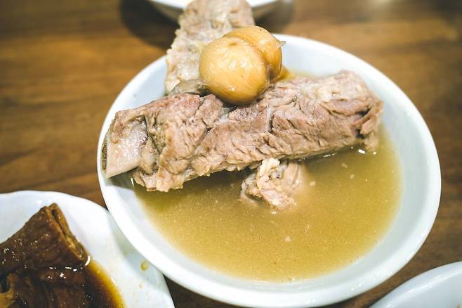 돼지갈비를 허브와 향신료로 오래 끓인 국물 요리로 마늘 향이 깊게 배어 있어 감기 기운이 있을 때 먹으면 딱!