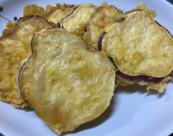 반죽은 너무 오래 저으면 바삭한 식감을 잃게 되므로 대충 덩어리 없이 섞일 정도까지만 저어주는 것이 요령이다. 반죽이 완성되면 썰어놓은 고구마를 하나하나 묻혀 팬에 올릴 준비를 한다.