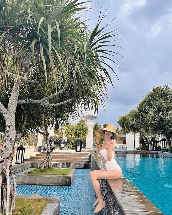 기은세는 이국적인 해변을 배경으로 순백의 튜브톱 모노키니를 완벽 소화하며 시선을 사로잡았습니다.