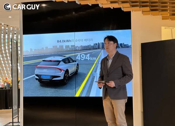 이번 EV6 페이스리프트는 실내외 변화도 크지만 성능도 크게 개선했다. 배터리의 에너지 밀도를 높인 4세대 배터리를 적용해 배터리 용량이 77.4kWh에서 84kWh로 증가했다. 이에 맞춰 주행가능거리도 기존 475km에서 494km로 증가했다.