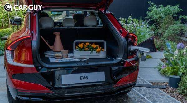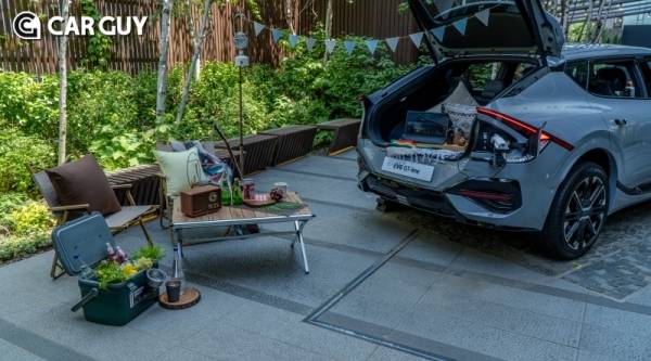 EV6에 장착된 V2L기능을 활용한 캠핑부스도 마련해 다양한 라이프스타일에 적용이 가능한 활용성을 강조했다. 또 차량 실내에 배터리 사용 가능시간, 잔량을 새롭게 계기판에 표시했다.