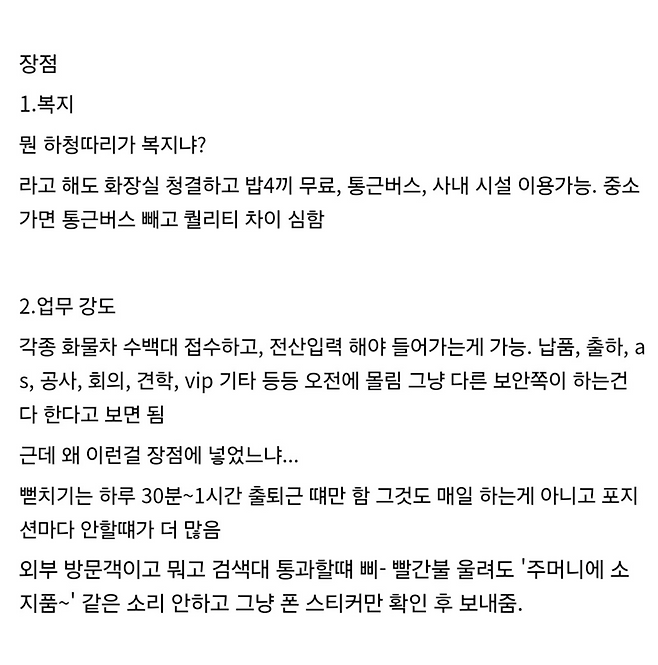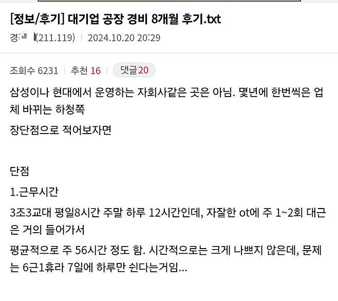 대기업 공장 경비 8개월 후기입니다.
