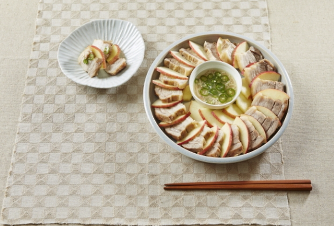 보쌈은 돼지고기의 단백질을 담백하게 즐길 수 있는 대표 메뉴입니다. 흔히 김치와 함께 먹지만 사과를 넣어서 조리하면 상큼한 보쌈을 즐길 수 있습니다.