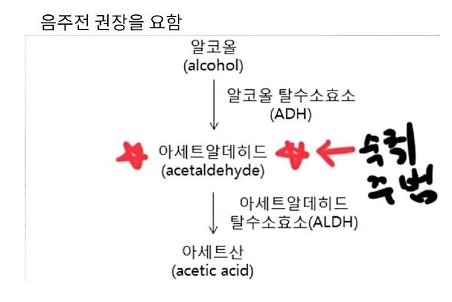숙취란, 술(알코올)을 분해하는 과정에서 생긴 아세트알데히드라는 독성 물질 때문에 생기는 증상입니다.