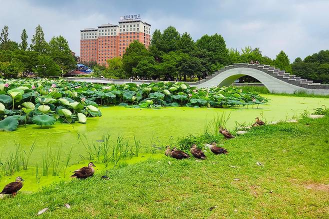 팔달로변에 위치한 덕진공원은 고려시대에 형성된 자연 호수가 1978년 4월 시민공원 결정 고시에 의거, 도시공원으로 조성되었고 취향정과 더불어 유서 깊은 곳이라 할 수 있는데요. 전주에서 볼거리로 강한 인상을 받게 되는 것 중의 하나가 덕진공원에 피는 연꽃이라 말하죠.