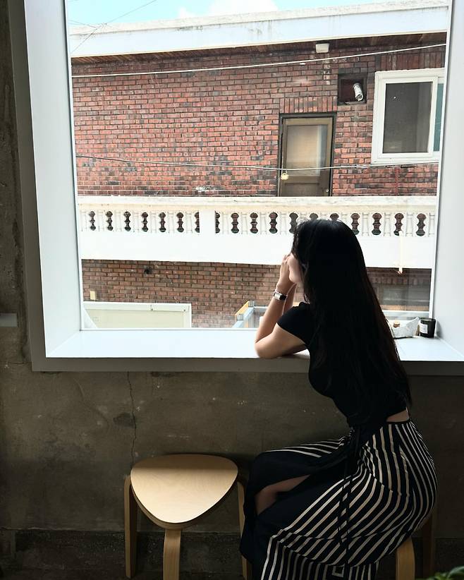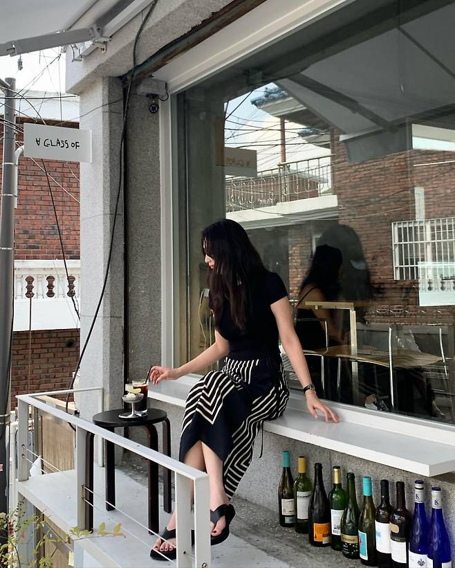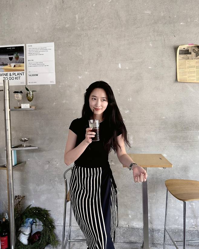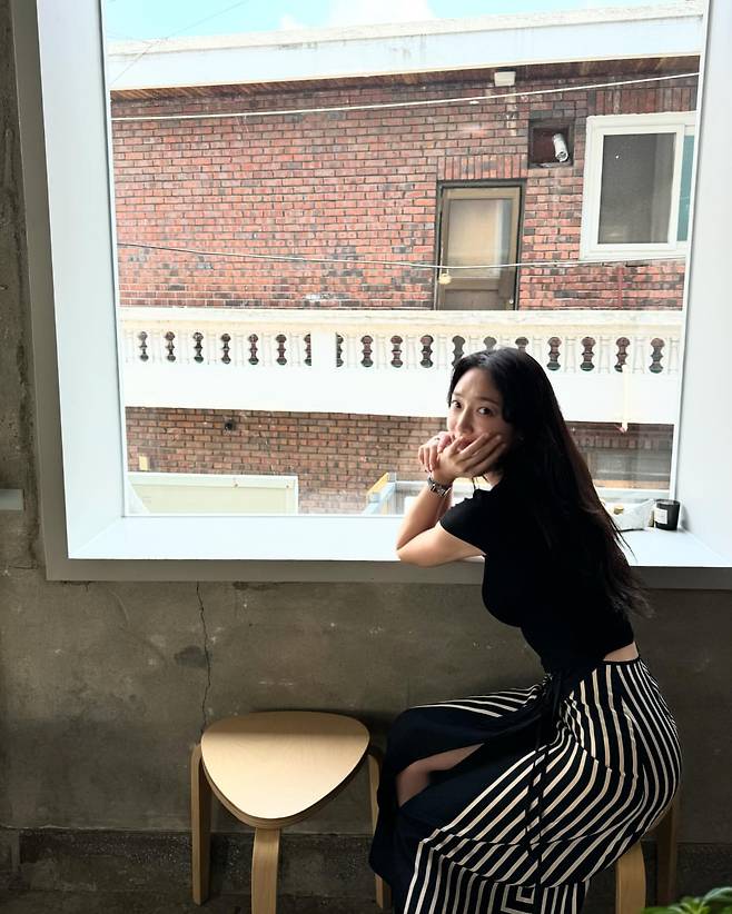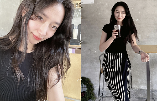사진 속 표예진은 골지 반팔티에 랩스커트를 매치해 날씬한 몸매를 뽐냈습니다.