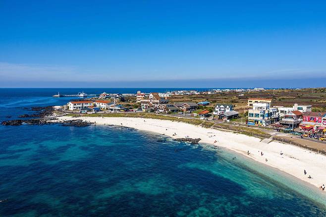 이국적인 에메랄드빛 바다와 새하얀 백사장이 펼쳐진 협재 해수욕장은 여름철 제주 여행의 아이콘이라 할 수 있을 정도로 환상적인 국내 휴양지인데요. 비교적 한적하면서도 이국적인 풍경이 아름답고, 입구에서부터 펼쳐지는 푸드트럭과 카페들 덕분에 입까지 즐겁습니다.