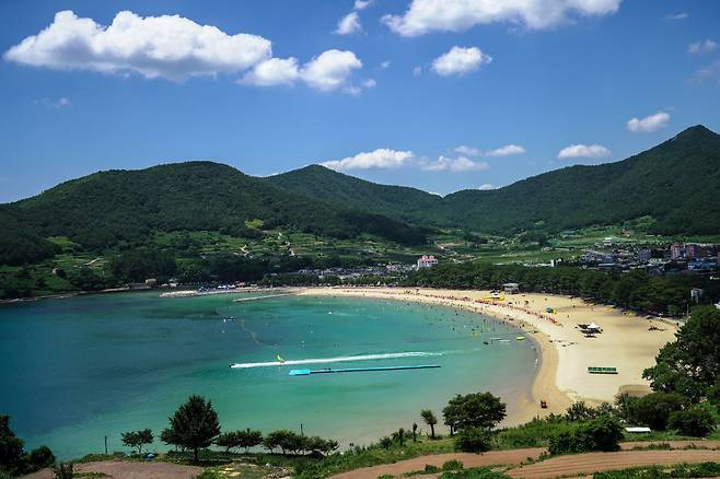 푸르른 남해와 고운 은빛 모래사장이 어우러진 상주 은모래비치는 대표적인 여름 휴양지입니다. 수심이 얕고 파도가 잔잔해 커플, 가족분들이 찾는 남해의 보석 같은 해변이라고 할 수 있는데요.