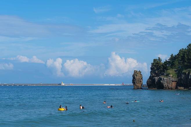 특히 한섬해변 인근에는 마린 포트홀(파도의 침식 작용으로 생긴 항아리 모양 구멍)과 시스택(파도의 침식 작용으로 생긴 길쭉한 암석)을 관찰할 수 있어서 바다를 즐기는 것 뿐만 아니라 지질관광도 함께 즐길 수 있는 장점이 있죠.