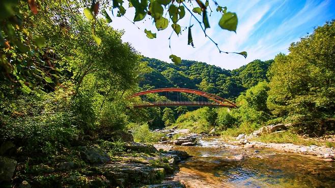 특히 계곡을 따라 조성된 생태체험 탐방로는 걷기 좋은 코스로 각광받고 있다. 구름다리에서 시작해 군유동까지 이어지는 트레킹 코스는 무리 없는 경사와 비교적 짧은 거리 덕분에 중장년층에게도 적합하다.