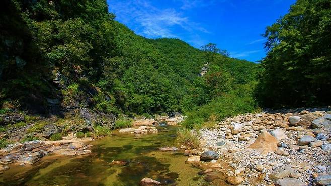 하지만 울긋불긋한 풍경이 없어도 특별한 경험을 선사하는 계곡이 있다. 넓게 흐르는 맑은 물줄기, 오랜 세월 다듬어진 기암괴석, 그 옆을 따라 조성된 생태탐방로는 계절에 구애받지 않는 자연의 본질을 느끼게 한다.