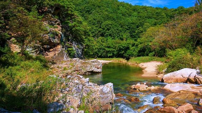 하지만 울긋불긋한 풍경이 없어도 특별한 경험을 선사하는 계곡이 있다. 넓게 흐르는 맑은 물줄기, 오랜 세월 다듬어진 기암괴석, 그 옆을 따라 조성된 생태탐방로는 계절에 구애받지 않는 자연의 본질을 느끼게 한다.