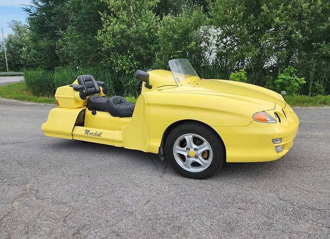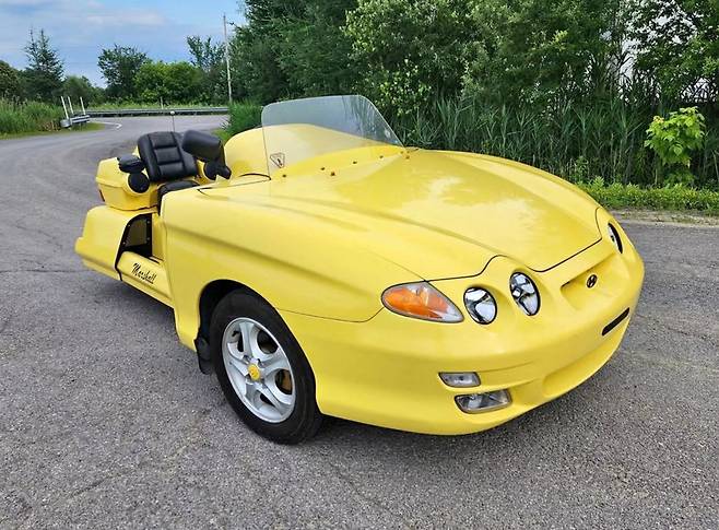 현대차의 오래된 쿠페 ‘티뷰론(Tiburon)’과 혼다의 대형 투어링 바이크 ‘골드윙(Goldwing)’이 하나로 결합된, 믿기 어려운 삼륜 차량이 캐나다에서 포착돼 미국 자동차 전문매체들의 관심을 끌고 있다.