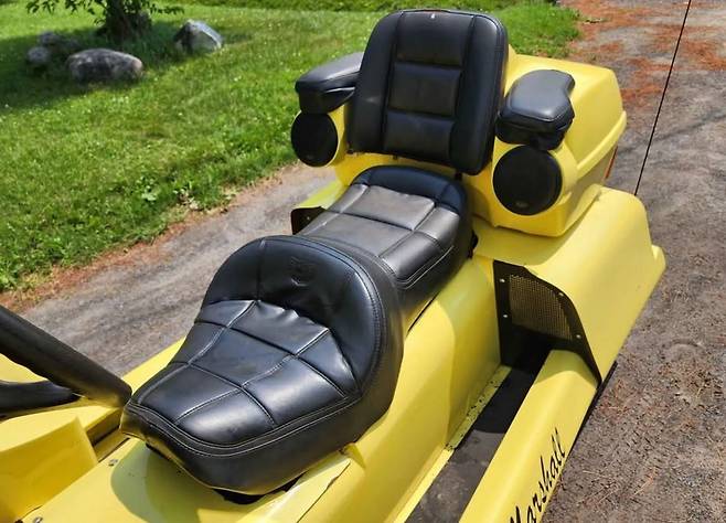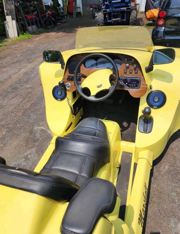 외형상으로 보면 전면은 일반적인 노란색 티뷰론처럼 보이지만, 뒤로 돌아가면 전혀 다른 세계가 펼쳐진다. 프레임은 보강된 튜브 샤시로 제작되었고, 그 위에 골드윙의 시트, 리어 서스펜션, 휠이 통째로 얹혀 있다. 말 그대로 반은 자동차, 반은 오토바이인 기묘한 하이브리드 차량이 탄생한 셈이다.
