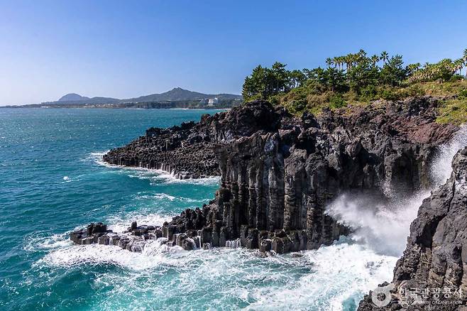 제주 서귀포시 대포동에는 마치 조각한 듯 정교한 바위들이 줄지어 선 주상절리대가 있습니다.