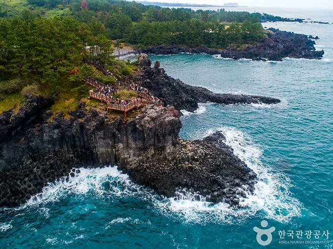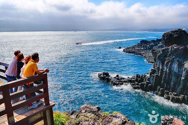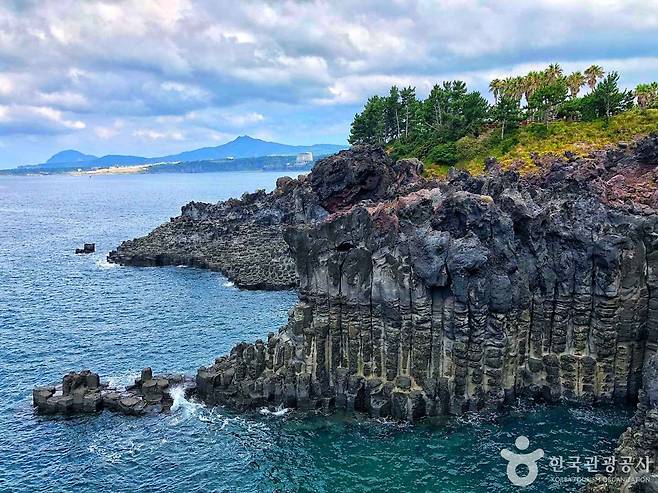 바다를 향해 수직으로 떨어지는 바위 기둥들은 용암이 식으며 수축한 자연의 결과물로, 제주에서도 손꼽히는 절경 중 하나입니다.
