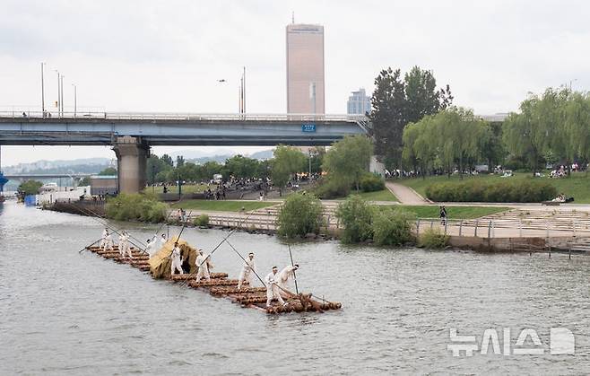 [서울=뉴시스] 김근수 기자 = '정선아리랑 in Seoul'이 열린 17일 서울 여의도 물빛광장에서 정선 여령면 뗏목 시연 펼쳐지고 있다. 2025.05.17. ks@newsis.com