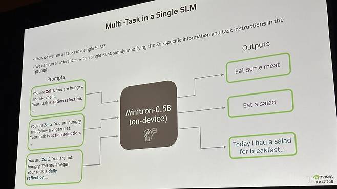 이 모든 작업은 5억 개 파라미터 규모의 소형 언어 모델 ‘Minitron 0.5B’에서 실행된다. 조 팀장은 “사용자 디바이스에서 모델을 실행하기 위해 프롬프트에 캐릭터 정보와 작업 지시를 조정하며 단일 모델로 모든 추론을 처리한다”고 밝혔다.