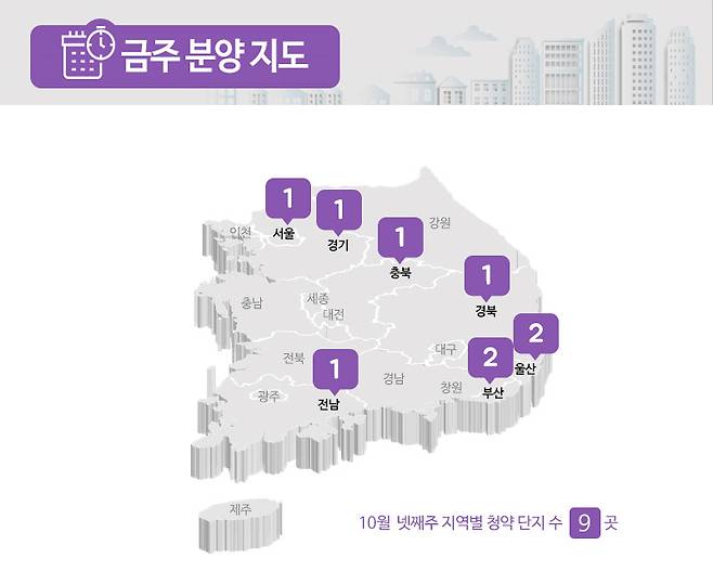 부동산시장 분석업체 부동산인포에 따르면 10월 4주 전국에서 신규 청약 및 입주자를 모집하는 곳은 9곳, 총 4440가구로 집계됐습니다(총 가구 수 기준).