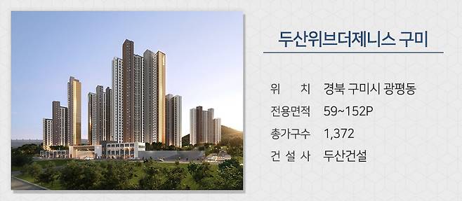 두산건설은 경북 구미시 광평동에 짓는 '두산위브더제니스 구미'를 분양합니다. 단지 앞으로 구미시민운동장, 보조경기장, 구미시복합스포츠센터 등의 다양한 스포츠 시설이 위치해 입주민들이 편리하게 이용할 수 있습니다. 중앙공원 등의 쾌적한 자연환경도 장점입니다. 송정초, 송정여중이 단지 바로 옆에 있으며 구미시립중앙도서관 및 학원가 등의 교육여건도 좋습니다.
