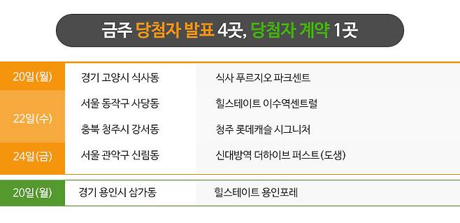 10월 4주 모델하우스 오픈 예정 단지는 총 5곳이며 서울과 경기, 충남, 경남 등에 분포합니다.