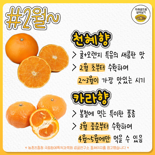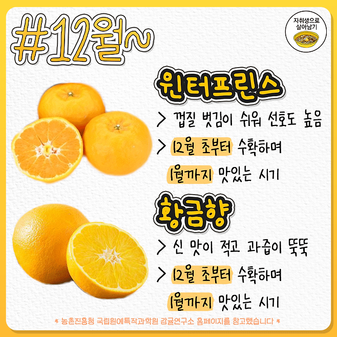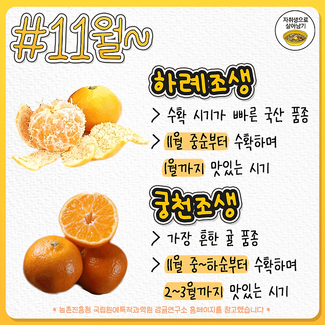 감귤연구소에서 알려준 귤 품종별 맛있는 시기