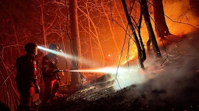 산림청은 진화대원 등 165명과 산불진화장비 30대를 투입해 산불 발생 4시간 만에 진화를 완료했습니다.