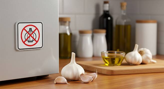 마늘은 냉장고에서 보관하면 수분이 차서 곰팡이가 생기기 쉬운 환경이 된다. 또한, 차가운 온도에서 마늘의 향과 맛이 강해질 수 있다.