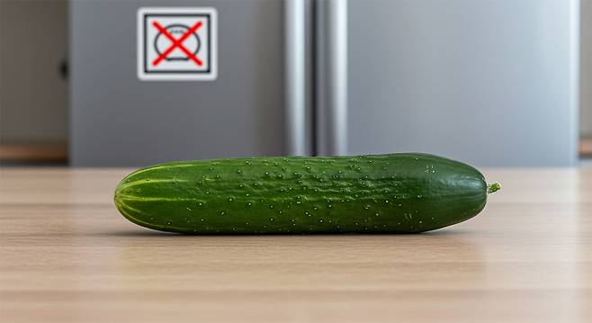 옳은 보관법: 오이는 실온에서 보관하고, 빨리 소비하도록 한다.