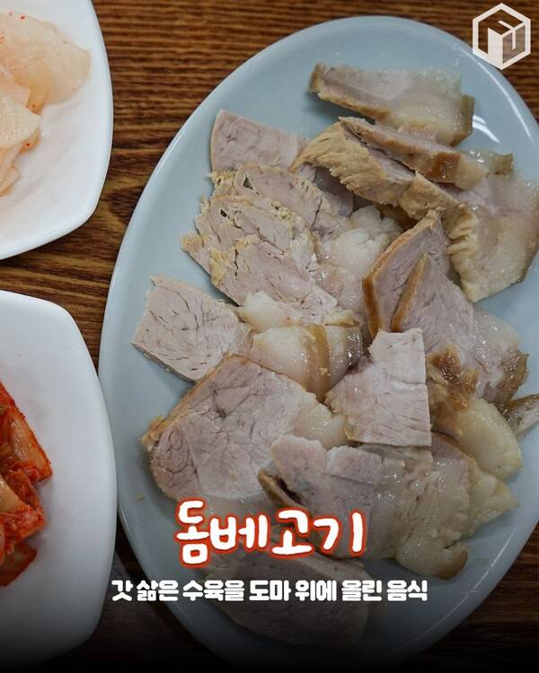 ‘돔베’는 제주 방언으로 ‘도마’를 뜻하며, 돔베고기는 삶은 고기를 도마 위에 바로 썰어내는 방식입니다.