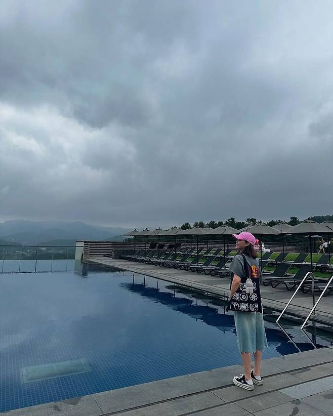 배경은 흐린 하늘 아래 펼쳐진 아난티 힐튼의 인피니티 풀. 김성령은 이번 모임을 특별한 장소에서 맞이하며 캐주얼하면서도 멋스러운 데일리룩을 선보였다. 날씨는 흐렸지만, 그녀의 스타일은 오히려 더 빛났다.